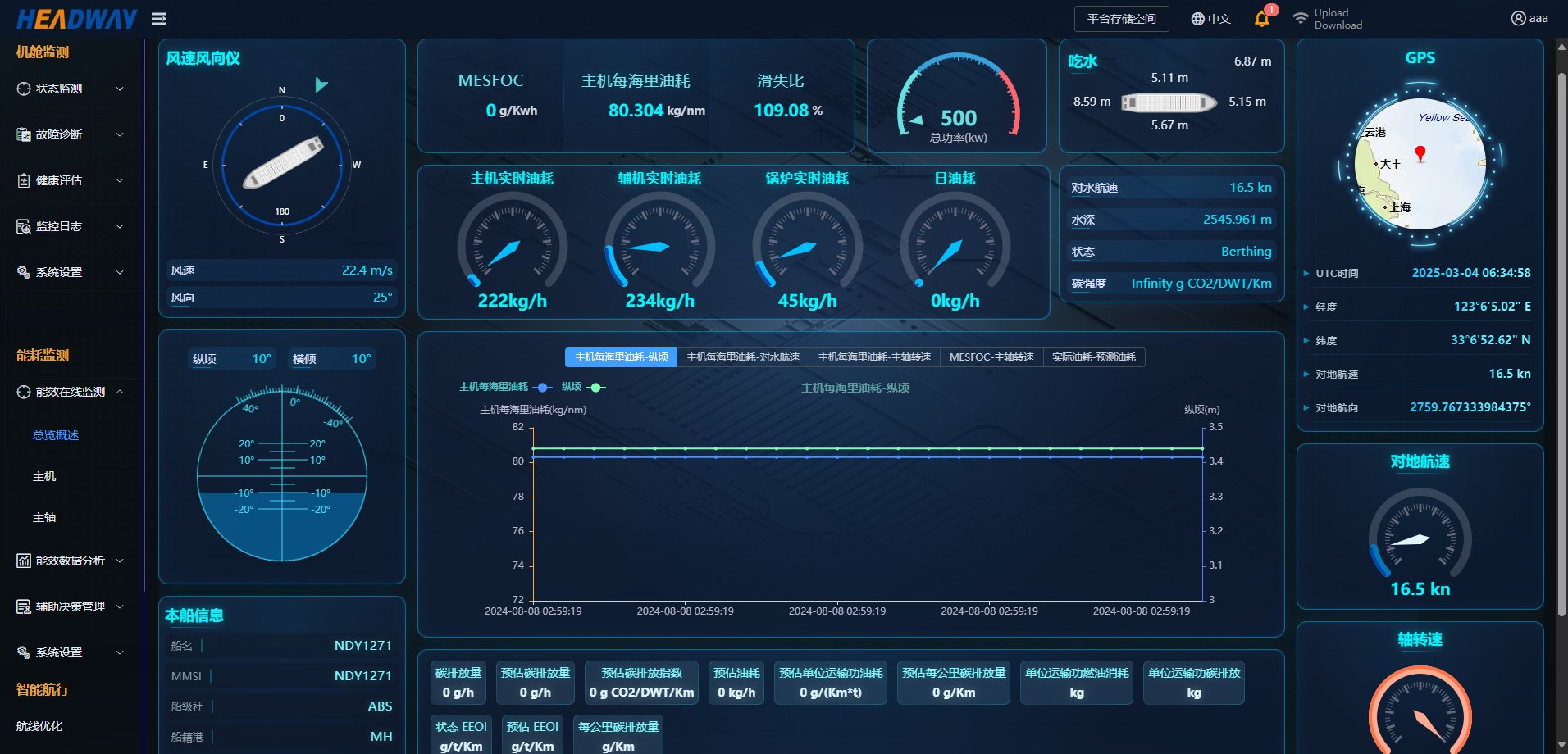 基于智能信息集成平臺,實時監(jiān)測船舶航行各個關(guān)鍵指標(biāo),運用現(xiàn)代化船舶能效管理的系統(tǒng)性方法,對船舶能源消耗、能源利用效率和二氧化碳排放進(jìn)行嚴(yán)格的控制和管理,提高船舶能效,減少設(shè)備自身或人為因素造成的額外消耗,實現(xiàn)船舶節(jié)能減排的能效要求,推動航運綠色發(fā)展。